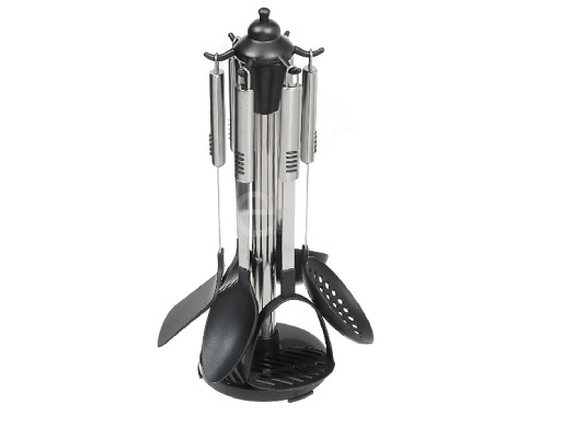 Набор ножей 7 предметов, 20 см, 20 см, 15 см, 13 см, 9 см, ножницы, муссат, сталь, рукоятка пластик, с подставкой, дерево